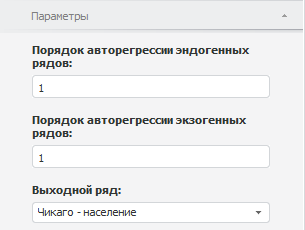 Порядок авторегрессии эндогенных/экзогенных рядов. Укажите порядок авторегрессии для эндогенных/экзогенных рядов;