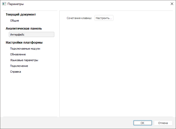 Для настройки инструмента «Аналитические панели» используйте диалог «Параметры».