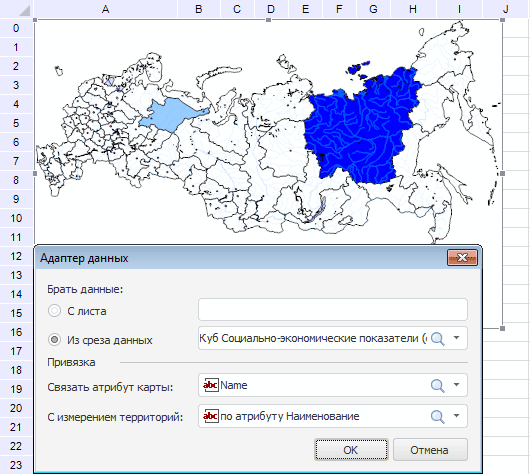 Пример создания карты по данным с листа