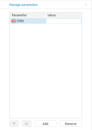 The view of the Manage Parameters tab of the Document side panel group of tabs: