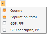 This component enables the user to manage column displaying using the drop-down menu at the top right corner. Mark the checkboxes next to column headings to select the checkboxes to be displayed: