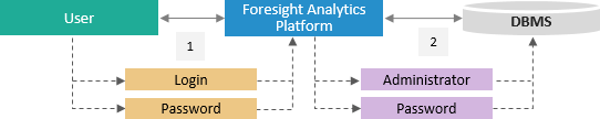 3. Foresight Analytics Platform addresses the DBMS by means of integrated administrator user credentials.