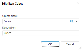 The dialog box can be used to change the object class (subclass or their combination for a composite filter), for which the filter is created, or modify filter description. Clicking the OK button saves the changes.