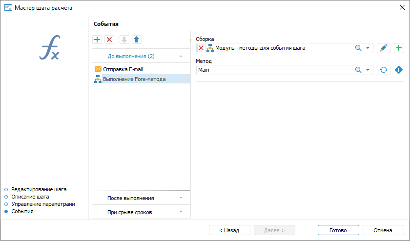 Примечание. Для ускорения выполнения ресурсоёмких расчётов в настройках процесса установите флаг «Выполнять шаги расчёта и методов Fore на BI-сервере».
