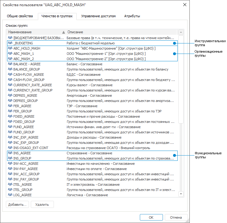Состав групп, в которые включены пользователи, определяют инструментальные, функциональные и организационные права на объекты продукта.