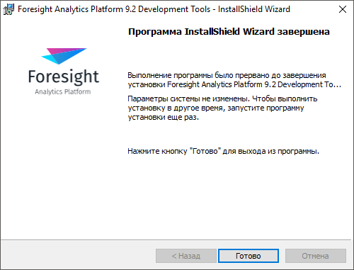 Для установки дистрибутива номер сборки инструментов разработчика должен совпадать с номером сборки продукта «Форсайт. Аналитическая платформа».