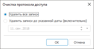 После выполнения одного из действий будет открыт диалог «Очистка протокола доступа»: