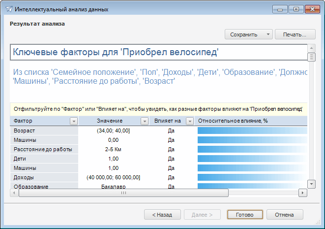 После выполнения интеллектуального анализа данных доступен просмотр и выполнение различных операций над результатами анализа.
