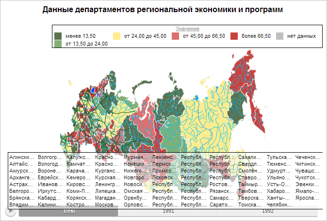 Для выполнения примера необходимо наличие на html-странице компонента ExpressBox с наименованием «expressBox» (см. «Пример создания компонента ExpressBox») и с загруженной картой в области данных. Расположим легенду над областью построения карты справа: