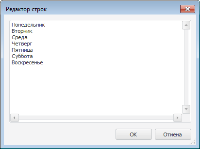 В режиме дизайна формы список строк задается в диалоге «Редактор строк».