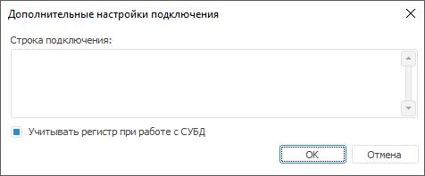 Окно с дополнительными настройками вызывается при нажатии соответствующей кнопки на странице «Свойства базы данных». В зависимости от типа СУБД набор дополнительных параметров будет разный.