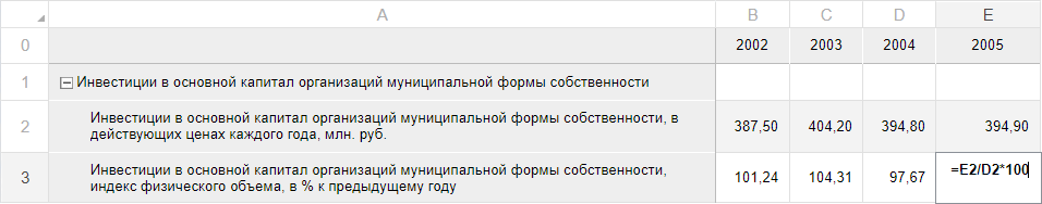 В веб-приложении доступно только создание и редактирование формулы непосредственно в ячейках области данных отчёта. В формуле можно использовать константы, операторы и ссылки на ячейки с помощью ручного ввода адреса ячеек.
