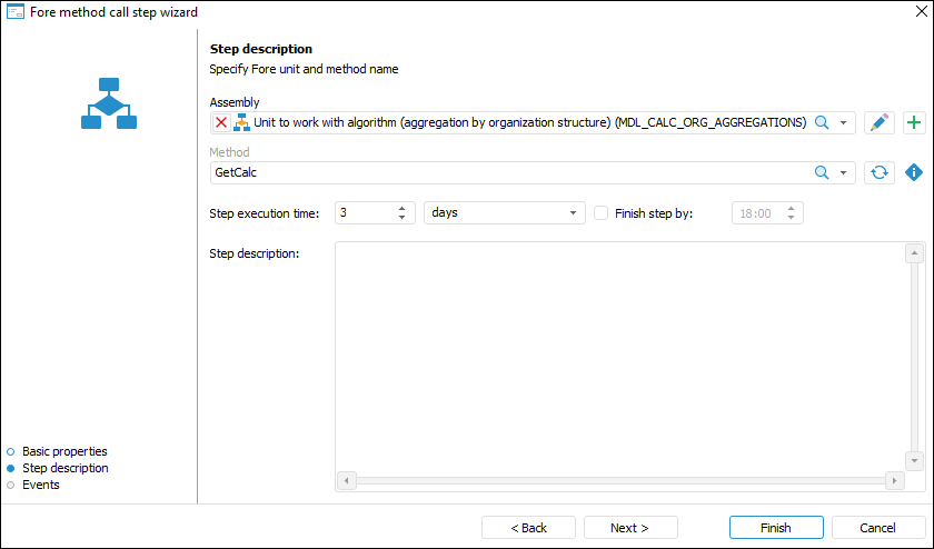 To determine time, by which step must be finished, select the Finish Step By checkbox. When the "minute" or "hour" time measurement units are selected, this box is hidden.