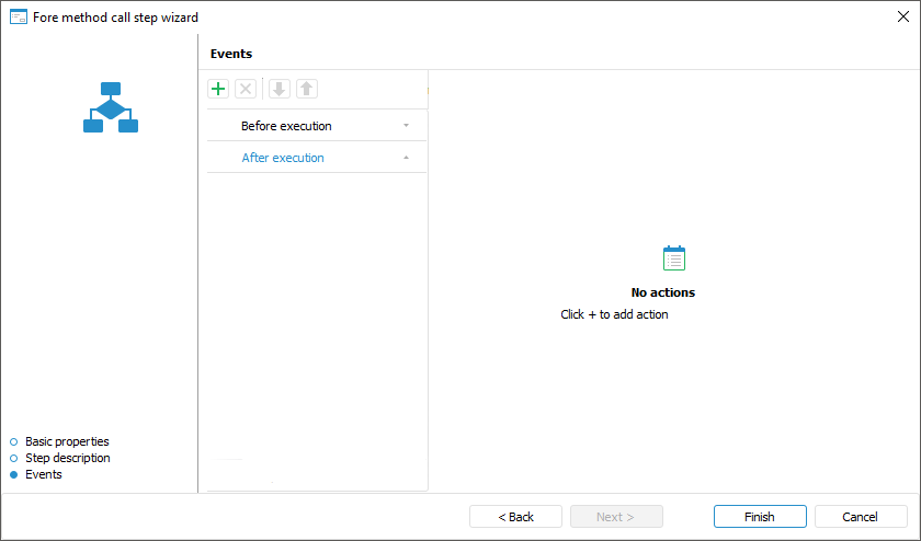 To create the step calling the Fore method, open the Fore method call step wizard.