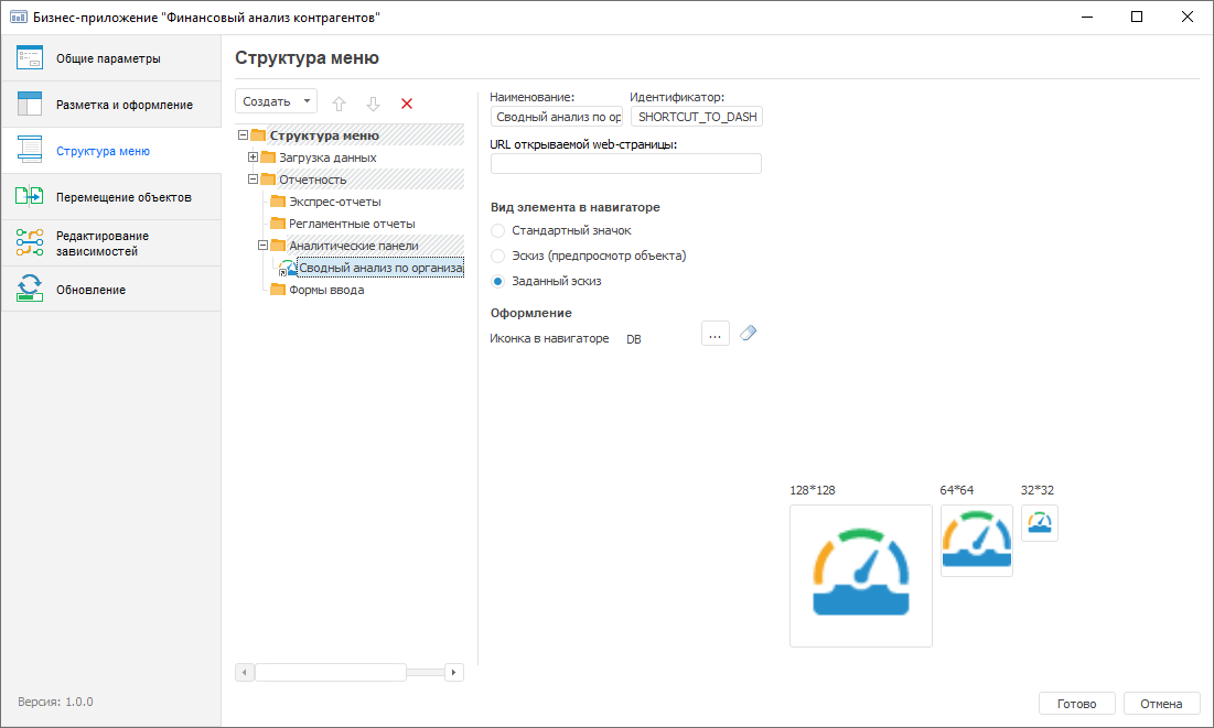 Before setting up user objects display parameters in the web application working area, make sure that their shortcuts are added to folders with menu structure. Display parameters of objects in the web application working area are set up in the