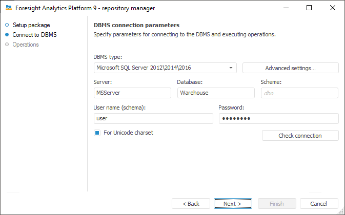 Advanced Settings. The button is available if connection to Microsoft SQL Server or PostgreSQL Database DBMS is set up. In the advanced settings specify: