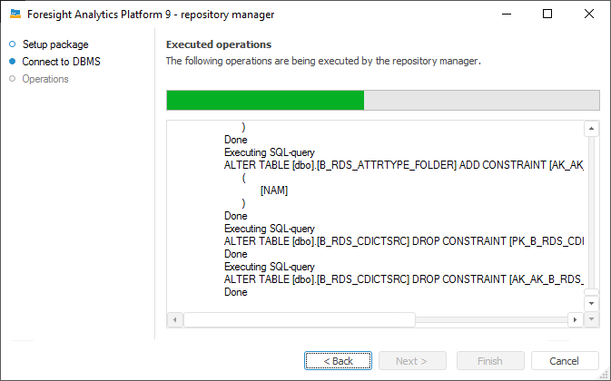 Click the Next button to start creation of an MDM metadata repository, at the same time, the operation progress is shown: