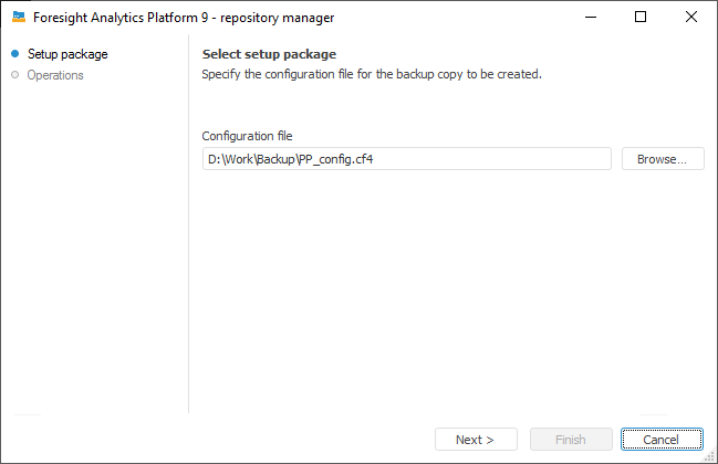 In the Configuration File box specify the configuration file created earlier. All created backups are saved to the directory where the configuration file is located.