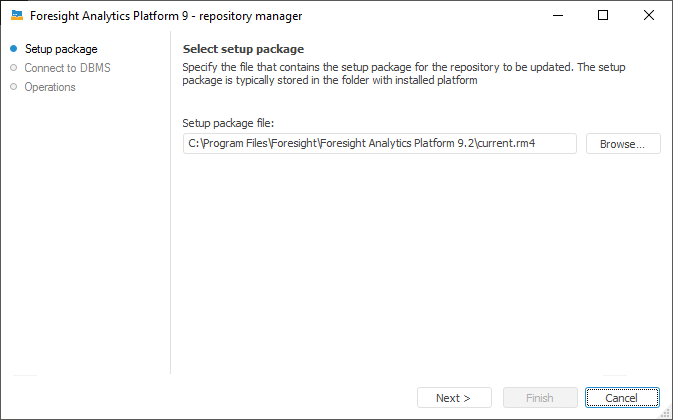 The path to the *.rm4 file, which stores executable scripts, is selected automatically. This file is included in the standard installation package and is located at S\Rm\current_RDS.rm4, where S is a path to the folder with installed Foresight Analytics Platform.