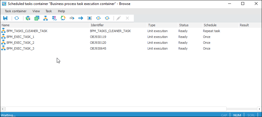 After executing the operations, the task scheduler displays a task container with the BPM_EXECUTOR_CONTAINER identifier: