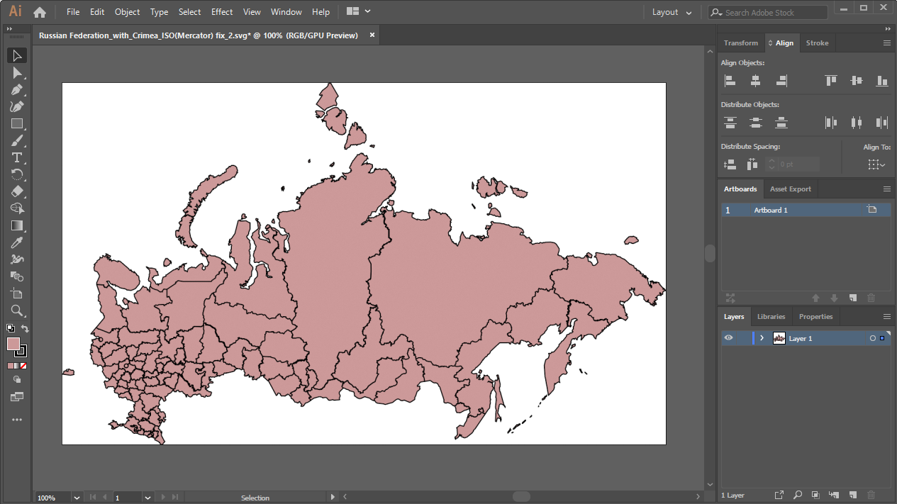 To determine exact coordinates of territory borders, prepare an SVG topobase in any vector graphics editor. Consider an example of preparing an SVG topobase in Adobe Illustrator: