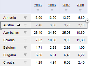 To select a separate table element, select it by clicking the element header in the heading or sidehead: