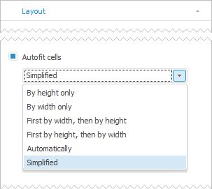 Autofit is used for optimal cell size autofit. Autofit is set up when the Autofit Cells checkbox is selected on the Layout tab of side panel: