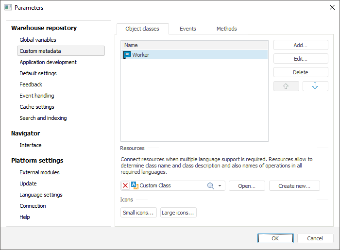 NOTE. Working with custom classes, events, and methods is available to the users who have repository administration permissions.