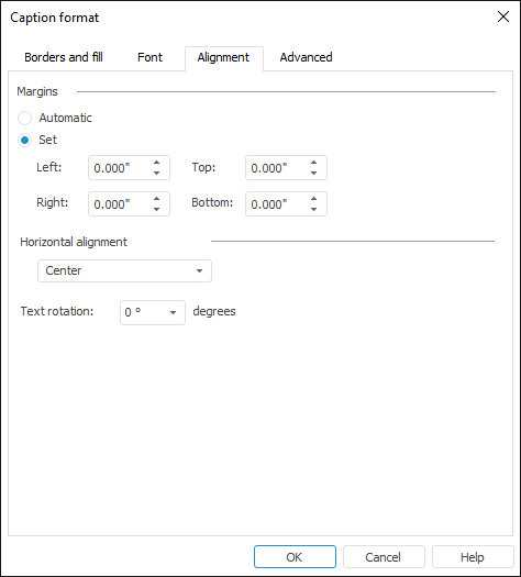 To set up caption alignment, go to the Alignment tab of the Caption Format dialog box. The setup is available only in desktop application.