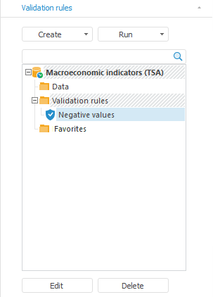 In the time series analysis tool data validation is performed using validation rules. For sequential execution of a number of validation rules they can be combined into a group.