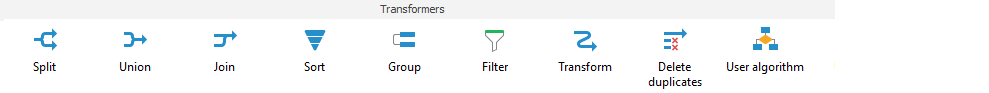 A data transformer is an object that transforms input data and (depending on the transformation type) loads transformed data into one or several consumer objects. Both data providers or other transformers can be used as transformer inputs. Similarly, both consumer objects or other transformers can receive data from transformer outputs. The length of transformation chain is not limited. Transformers are created and edited in desktop application.