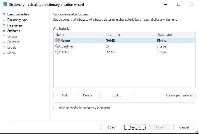 In the multidimensional model of data, dictionary elements play the role of indexes, which are used to create a coordinate vector of indicators stored in the cube cells. Each dictionary element has a set of attributes such as element name, unique code, and element order in the hierarchy. When elements in the dictionary are combined, the hierarchy – the most important property of a dictionary – emerges. As a rule, hierarchy is displayed as a tree, which nodes contain dictionary elements linked with attributes of ownership.