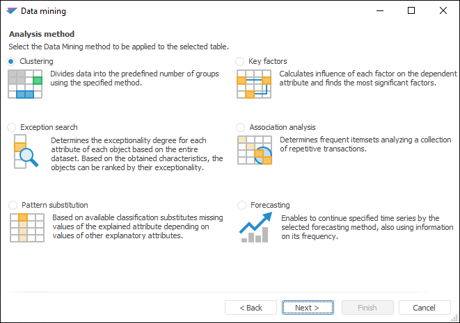 In Foresight Analytics Platform the following methods of data mining are available: