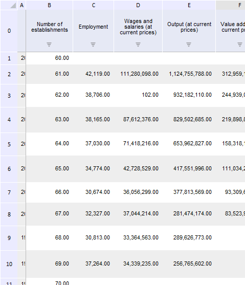 Executing the example requires that the HTML page contains the ExpressBox component named expressBox (see Example of Creating the ExpressBox Component) and have a loaded table in express report working area. This table may look as follows: