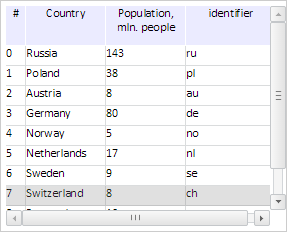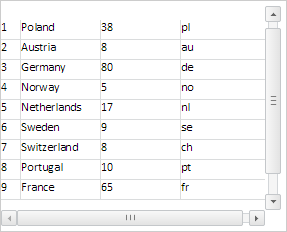 To execute the example, the HTML page must contain the DataGrid component named grid (see Example of Creating the DataGrid Component). Change table height and add a handler for vertical scrollbar position change event. Add a handler for scrollbars position change event: