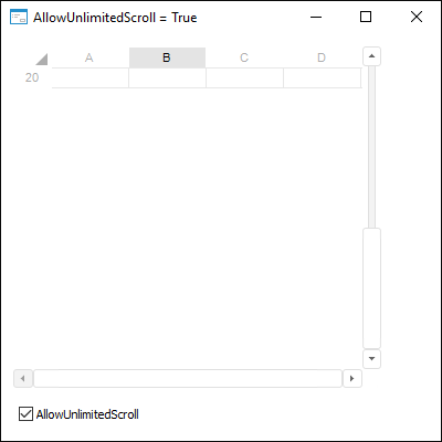 The AllowUnlimitedScroll property determines the scrolling mode for rows/columns.
