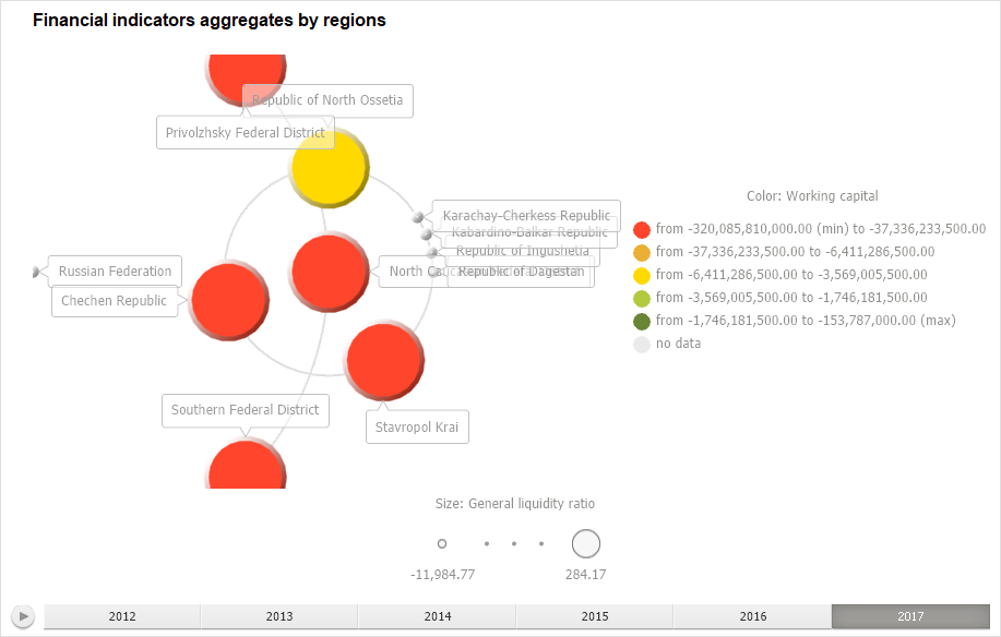 All operations with objects described in the Building Dashboard and Inserting and Setting Up Visualizers sections are available for the Bubble Tree visualizer.