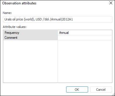 Observation attributes are a set of characteristics that each time series observation (point) has. A set of series attributes is set on creating time series database.