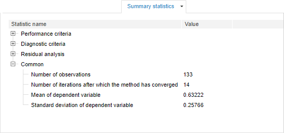 The Summary Statistics tab shows values of various summary statistics calculated for equation.