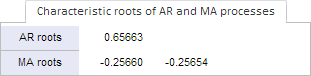 The Characteristic Roots of AR and MA Processes tab contains values of characteristic roots of autoregression (AR) and moving average (MA), and it is displayed if AR or MA order is set for the equation.