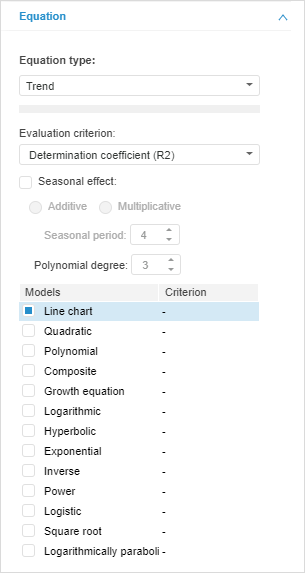 Seasonal Effect. The checkbox is deselected by default. Equation coefficients are evaluated by the least-squares method based on the source series.