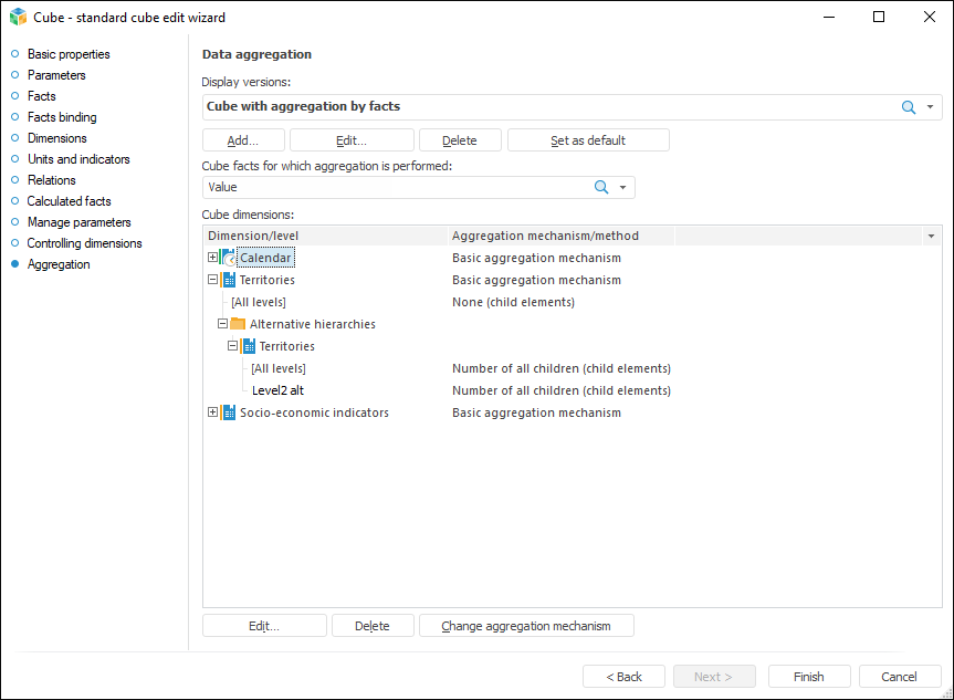 NOTE. If cube fact dimension aggregation is set, it is not available to use calculated expressions in linked cube facts.