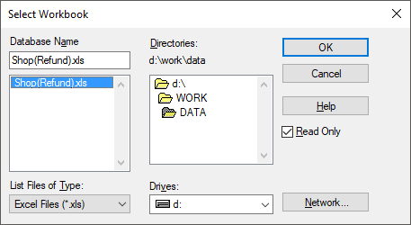 Click the Select Workbook button. In the opened dialog box specify the file used to load data: