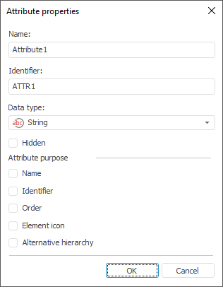 To define the dictionary attribute properties, use the Dictionary Attribute Properties dialog box that opens on clicking the Add button.