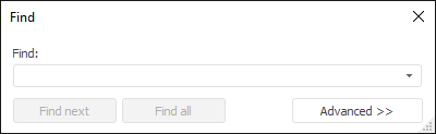 Enter name of the required element or a part of the name in the Find What box. After clicking the Find Next button the focus is moved to the first found element. Clicking the button again moves focus to the next found element, and so on.
