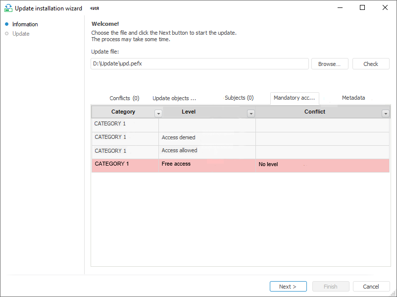Update cannot be installed when mandatory access control conflicts exist. Resolve the conflicts in the security manager manually and try again.