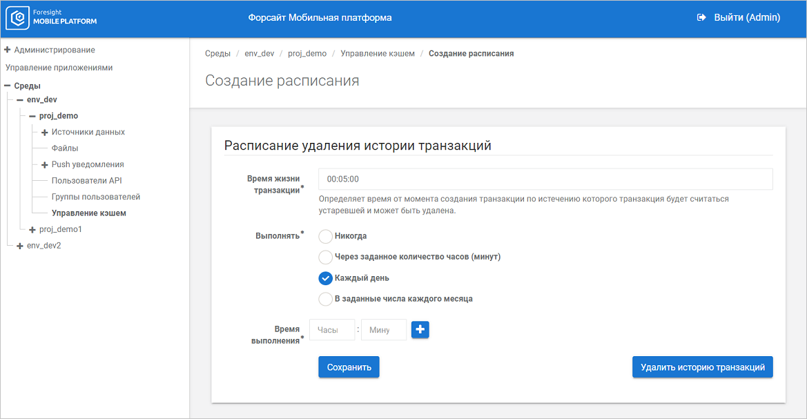 Удаление кэша с истёкшим сроком хранения. Для всех существующих кэшей задайте расписание удаления кэша с истёкшим сроком хранения, позволяющее избежать постоянного роста базы данных мобильной платформы. Срок актуальности кэша задается при импорте ресурса. Также удалить все устаревшие кэши можно вручную;