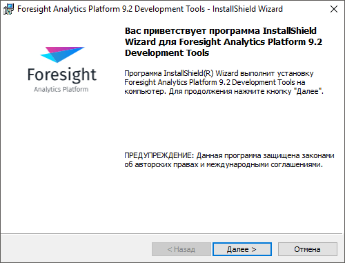 Для установки дистрибутива номер сборки инструментов разработчика должен совпадать с номером сборки продукта «Форсайт. Аналитическая платформа».