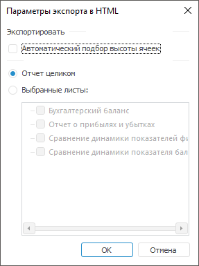 Примечание. Экспортируются только видимые объекты экспресс-отчёта. При несовместимости некоторых объектов в процессе экспорта будет выдано предупреждение.
