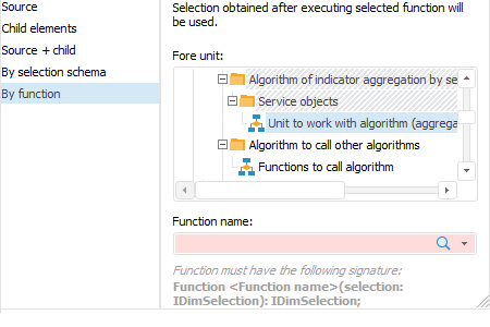 NOTE. After selecting the unit, determine function name: Function <function name>(selection: IDimSelection): IDimSelection.